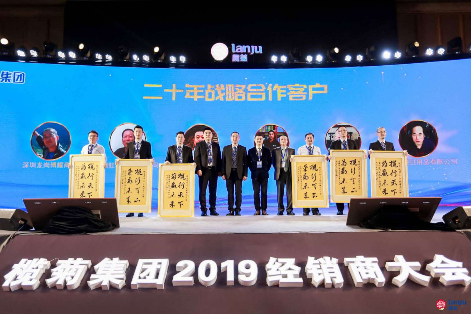 在欖菊36年的發(fā)展過程中,有一批合作超過20年的客戶,與欖菊相扶相伴,創(chuàng)業(yè)守業(yè),共同譜寫了光輝歲月的華美篇章。本次大會特設“20年戰(zhàn)略合作客戶”表彰環(huán)節(jié),駱建華董事長親自書寫牌匾相贈,以示感謝與鼓勵。